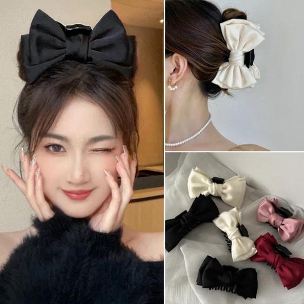 韓国のファッション-女の子と女性のための大きな弓の爪 2つの両面ヘアクリップ ヘアアクセサリー