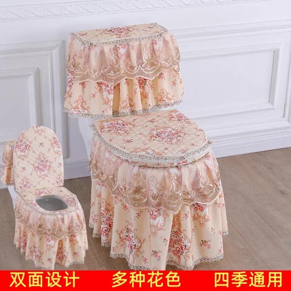 ジッパースタイルの防塵トイレマット 大きな裾のジャカードシート トイレカバー レース布のふくらんでいるツール 3つのクッションセット