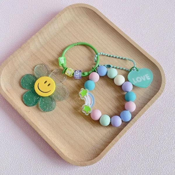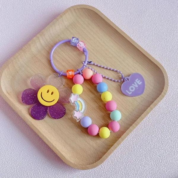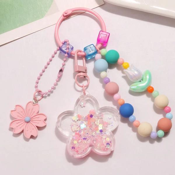 女の子のためのピンクの花の形をしたキーホルダー 韓国風のキーホルダー バッグペンダント 携帯電話アクセサリー