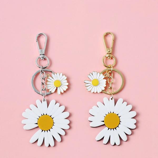女性のための白いデイジーのキーホルダー エナメルと花の魅力を持つジュエリー ギフトに最適