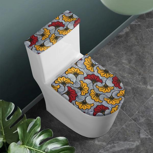 トイレカバーセット バスルーム トライバルフラワー プロテクター タンクカバー 弾性エッジ トイレアクセサリー