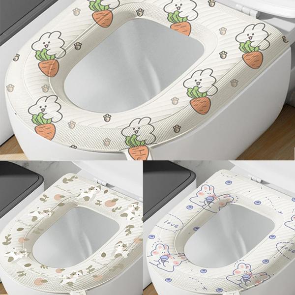 ハンドル付きの洗える防水トイレカバー 家庭用トイレマット ウサギのプリント 厚い 1ピース