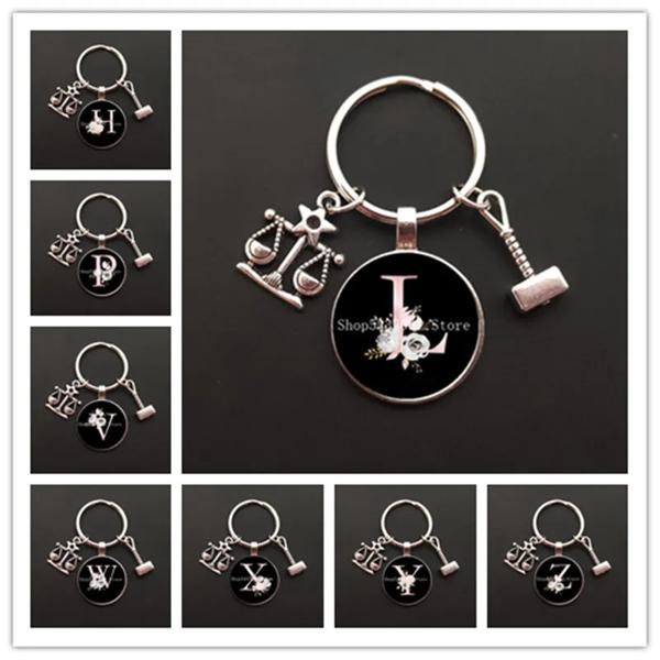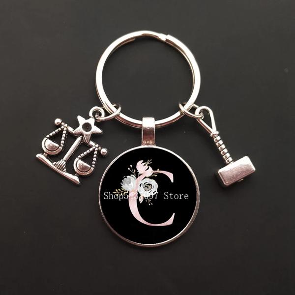 ジュエリー作りのためのガラスキーチェーン ジャスティスのためのハンマーキーホルダー 学生の判断 ジャスティスの贈り物 プラスチックチェーン A-Z
