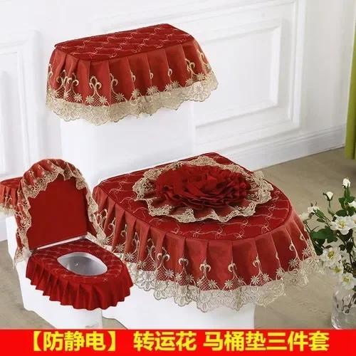 レースジッパー付き便座カバー U字型生地 トイレマットセット 3ピースクッション 冬用家庭用