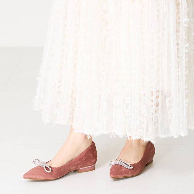 ビジューリボンフラットパンプス/41310