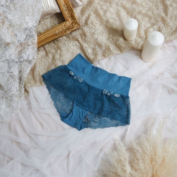 おやすみショーツはリラックスタイムをサポートできるような、レーシーなデザインに仕上がりました。フルール・ド・リスから着想を得たアップリケは、カメオのブローチのような豪華さと存在感に。ほどこされた上品なラメ糸の輝きが組み合わさり、王室を感じさせる気品高い印象に仕上がりました。