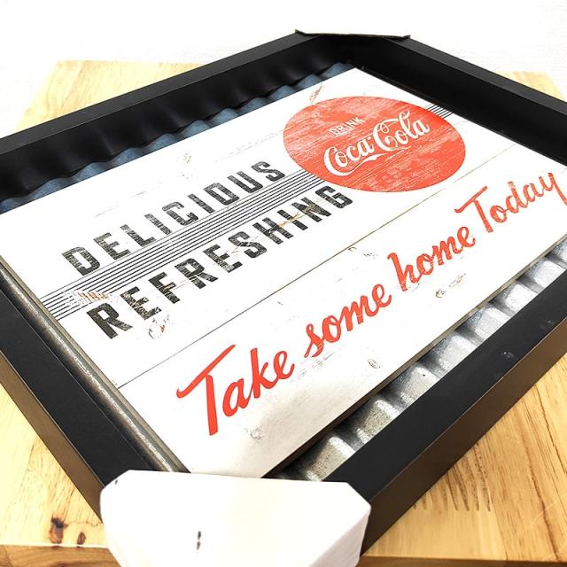 【ウッドサイン"COCA COLA Framed Corrugated Metal with MDF Lift"】