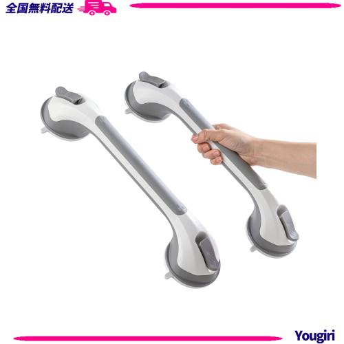 【ご注意事項】風呂手すりサイズ:約42.8*8.1cm 2個セット 吸盤サイズ:約9.1cm 耐荷重:110kg/240ポンド 手すりに体重をかけないでください。子供、高齢者、介護者の安全のため、吸盤は金属、ガラス、セラミックタイル、ステンレス、アクリルなどの滑らかで非多孔性の平面にのみ貼り付けられますが、凹凸不平のセラミックタイル、織り目加工のボード、未完成の大理石、壁紙、タイル ギャップ、塗装された壁などの面には適していませんのでご注意ください。