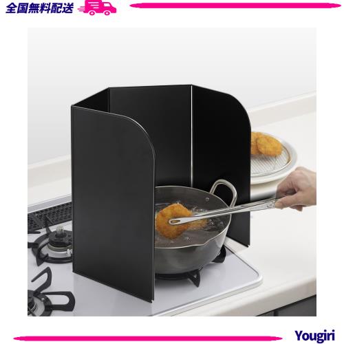 「油はね・飛び散りをしっかりガード」汚れが目立ちにくい黒色タイプ!ジャバラに折れる4面式は、調理スペースに合わせて囲み方を自由に変えられる!使うところだけ囲って、油ハネが広範囲に飛び散りにくい!