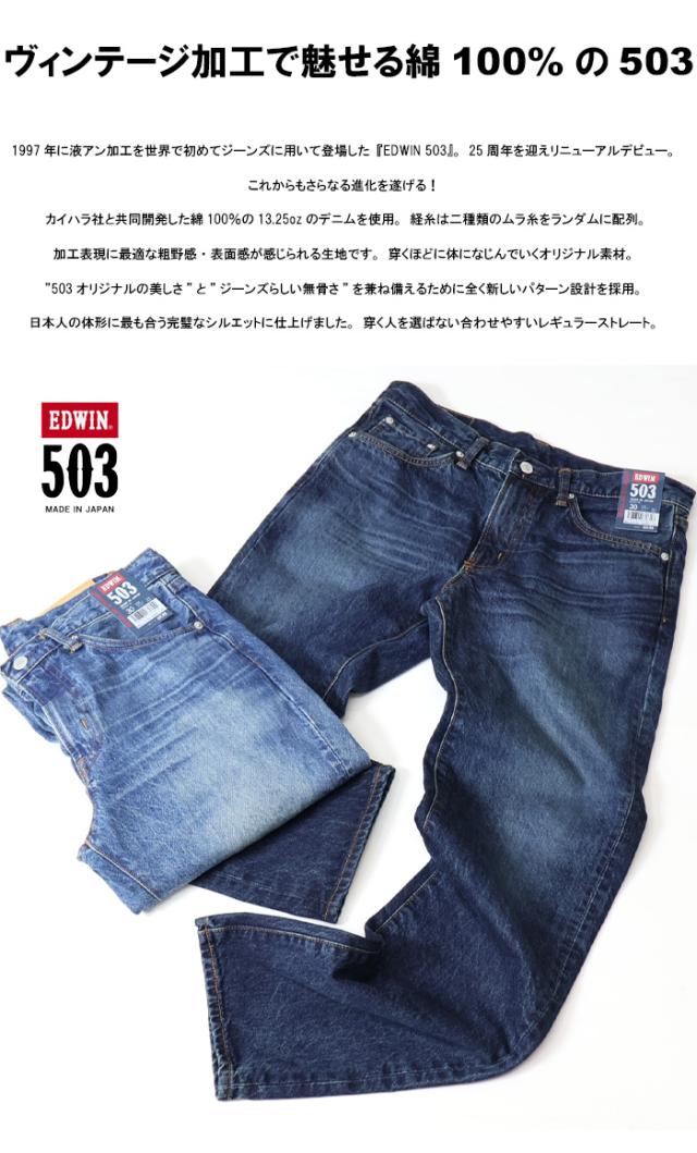 EDWIN エドウィン 503 綿100% レギュラーストレート E50323 ジーンズ デニム 日本製 パンツ メンズ 送料無料