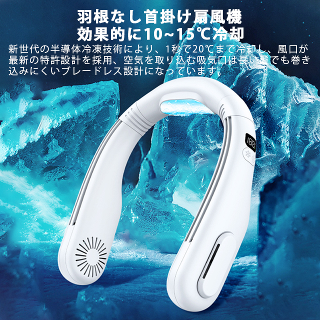 最安挑戦 『数量限定』売り尽くし 送料無料 首掛け扇風機 ネッククーラー 冷却プレート 半導体冷却 人間工学設計 羽根なし 静音 軽量 接触冷感 首に負担軽減 12h連続送風 3段階風量調節 羽なし くびかけ扇風機 携帯扇風機 5200mAh