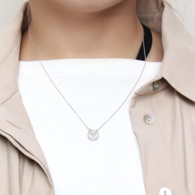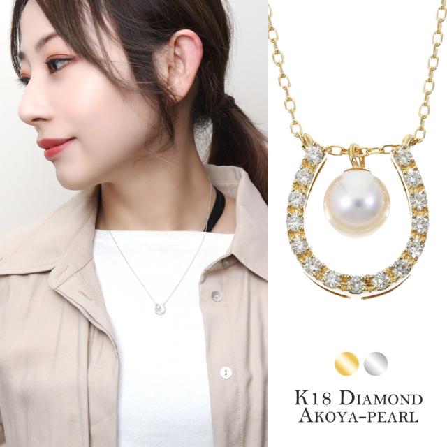 K18gold Diamond Akoya-pearl Horseshoe Necklace