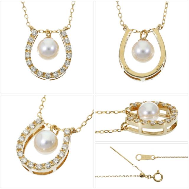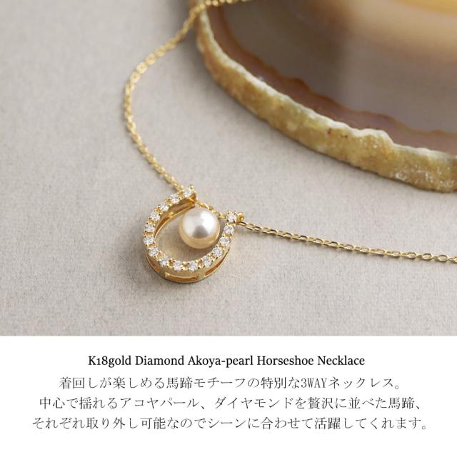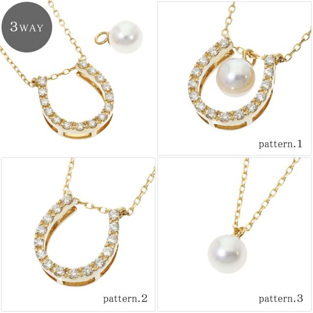 選べる2カラー 3way 馬蹄 アコヤ真珠 パール ダイヤモンド 18金 ゴールド ネックレス ペンダント K18 18K 金 本真珠 真珠 アコヤパール