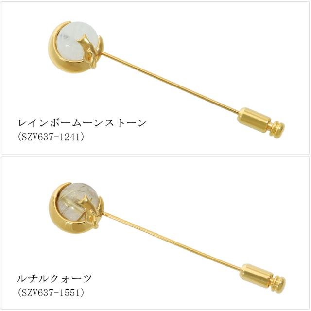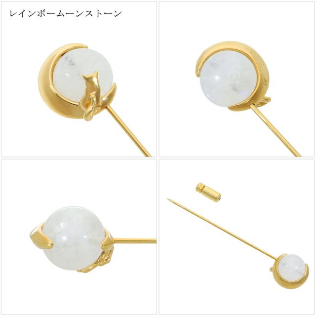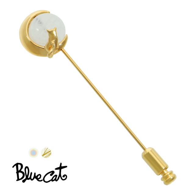 Blue Cat 三日月 猫 ラペルピンブローチ ピンブローチ シルバー 925 ゴールド レインボームーンストーン ねこ ネコ キャット 猫好き 上品
