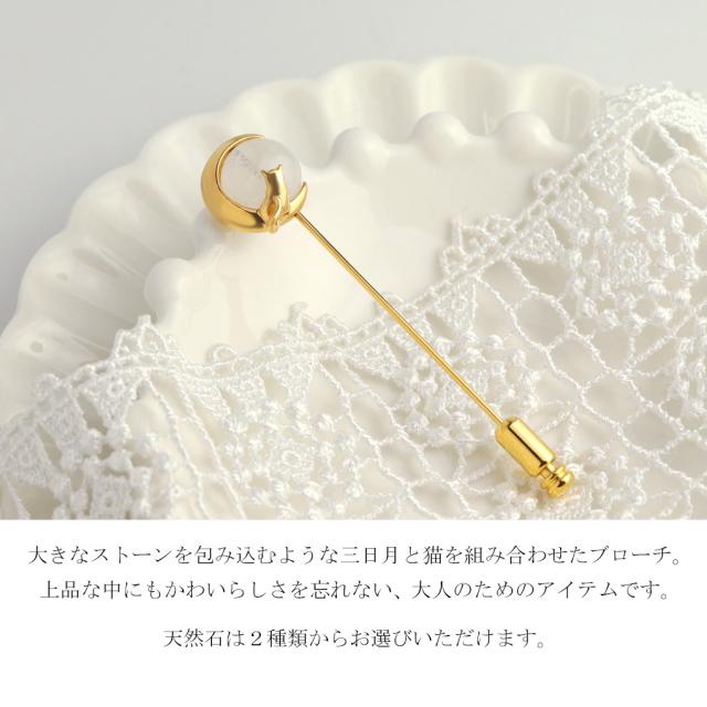 大きなストーンを包み込むような三日月と猫を組み合わせたブローチ。