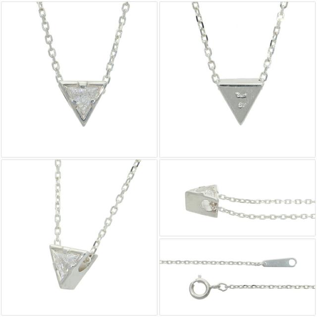 Blue Cat トライアングル ネックレス ペンダント レディースネックレス シルバー 925 キュービックジルコニア 三角形 逆三角形 V字 細見え 華奢