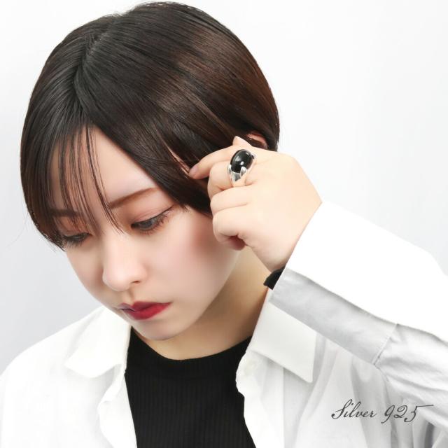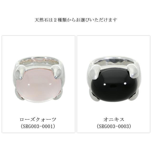 Blue Cat 選べる2種 大粒 ストーン リング 指輪 9〜15号 レディースリング シルバー 925 オニキス ローズクォーツ 天然石 誕生石 石 石リング