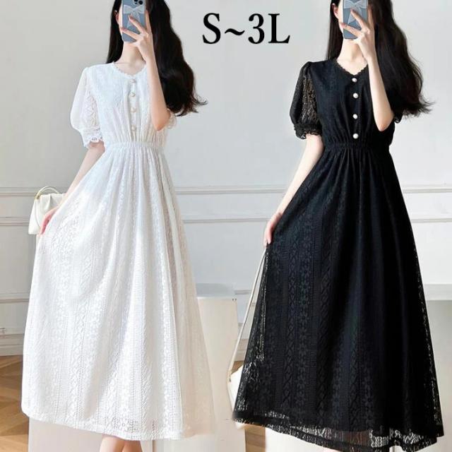 レースワンピースワンピースロング レース総レース膝下丈 ミモレ丈 フレア Aラインギャザー大きいサイズ 二次会 パーティー 結婚式披露宴ドレス春夏秋 S M L 2L 3L