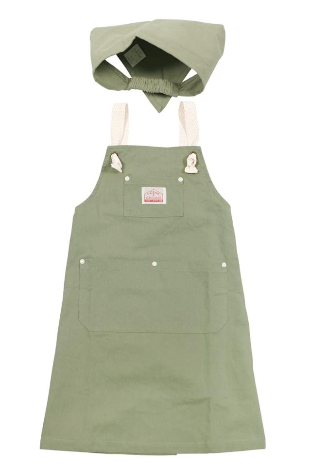 ◆商品名:[オーシャン&グラウンド] お洒落なキッズエプロンと三角巾のセット (M, カーキ)
