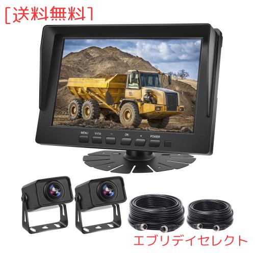 Hizenyo トラックカメラ2台搭載 バックカメラモニターセット 8インチバックモニター 24vバックカメラ 分割表示 ガイドライン 正像・鏡像