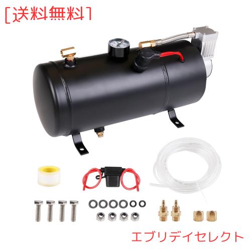 「エアホーンの改造に大活躍」 エアホーンの改造に大活躍できるこのコンプレッサーは、ヤンキーホーンと併用すると、迫力のサウンドが出てきます。乗用車、トラック、ボートなどに汎用しています。ホーンと併用できるだけではなく、普通車・軽自動車のタイヤ・ボール・ゴムボートなどの空気入れにもできます。