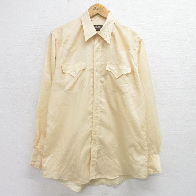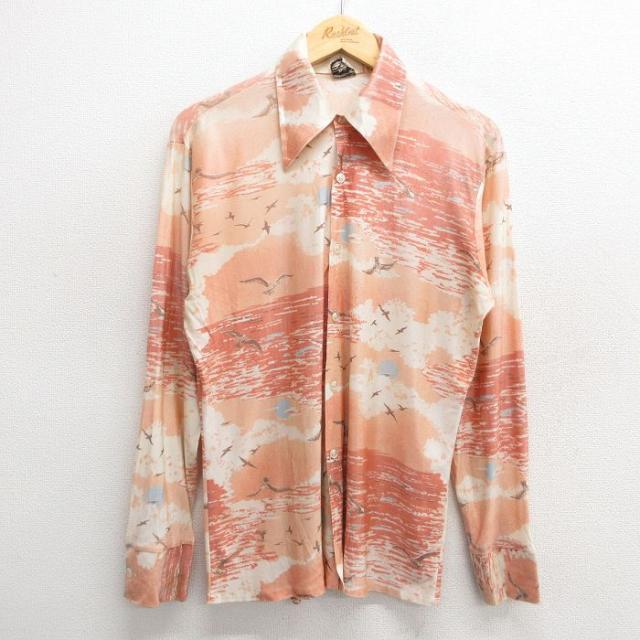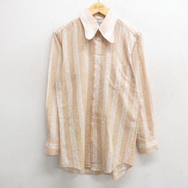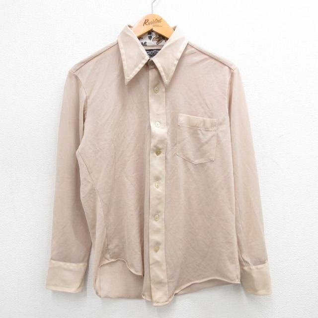 【商品名】 M★古着 長袖 シャツ メンズ 70年代 70s ベージュ
