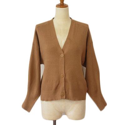 【中古】ザラ ZARA カーディガン リブニット Vネック L 茶 ブラウン レディース