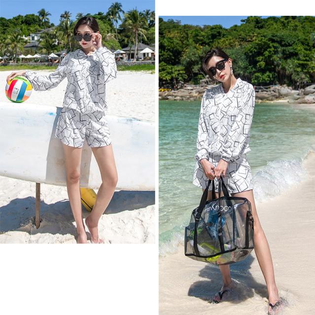 体型カバーばっちり!スポーツMIXなフードパーカー付き水着!