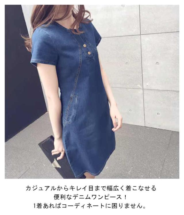 カジュアル レディース 大人 デニムワンピース 半袖 夏 スリム 膝上丈 半袖ワンピース 通勤 おしゃれ 大きいサイズ 夏服 かわいい 女性 着?せ 無地 シンプル 可愛い 体型カバー 切り替え ギフト 通学 プレゼント ワンピース