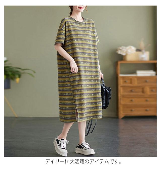 Tシャツワンピース 夏 ワンピース 半袖 レディース ロング Tシャツワンピ ロング 大きいサイズ 膝下 体型カバー カットソー ロング ゆったり カジュアル おしゃれ シンプル