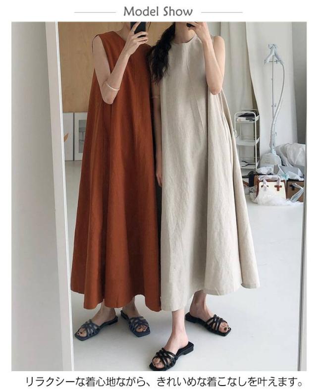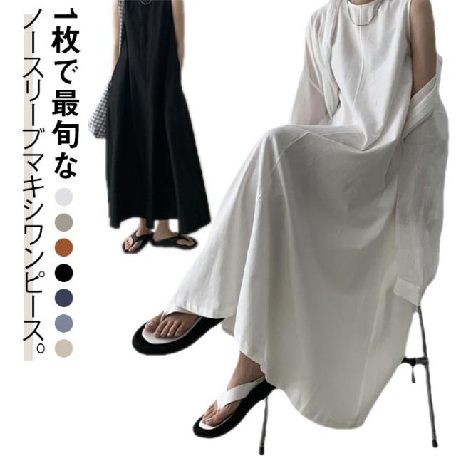レディース マキシ丈 春 綿ワンピース 夏 サマーワンピース ノースリーブ マキシワンピース ノースリーブワンピース ワンピース ロング丈 ナチュラル ゆったり 可愛い コットン 体型カバー
