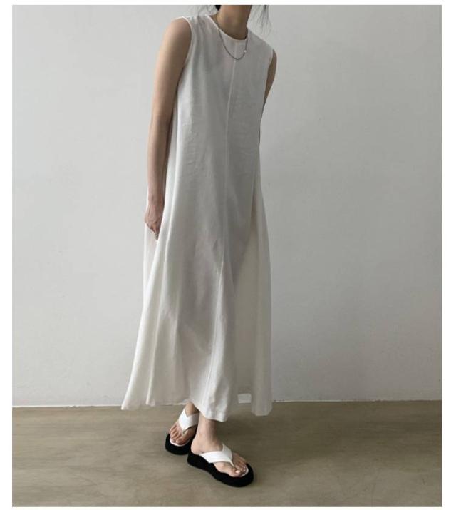 | 1枚で最旬なノースリーブマキシワンピース。 通気性に優れた、肌触りの良い綿の素材が、これからの季節にぴったり。 程よくゆとりがあるので、身体のラインを拾いにくく、すっきりとしたシルエットに。 リラクシーな着心地ながら、きれいめな着こなしを叶えます。 ノースリーブだからちょっと寒い時はジャケットやカーディガンなどのアウターを羽織ることもできます。 お出かけにはもちろんルームウエアとしてもおすすめ。 | |