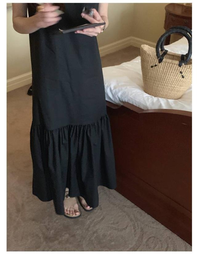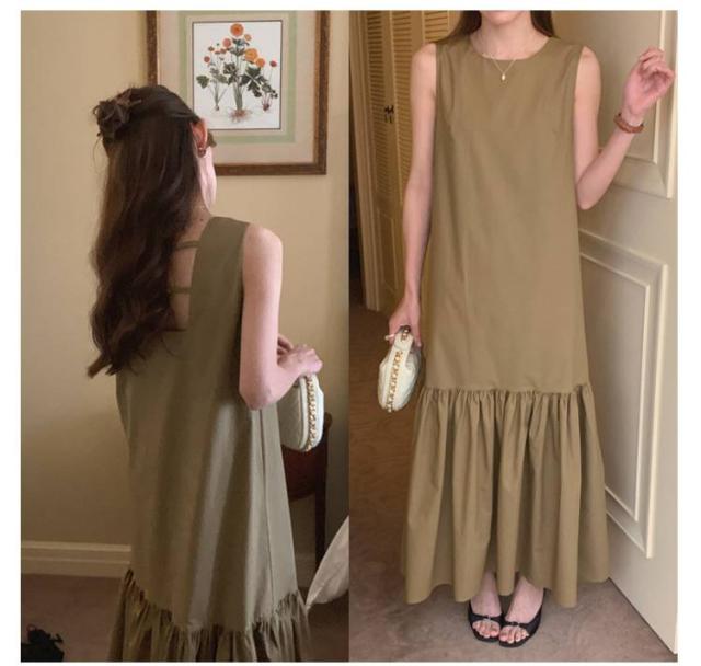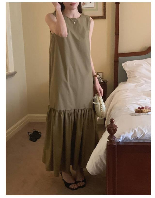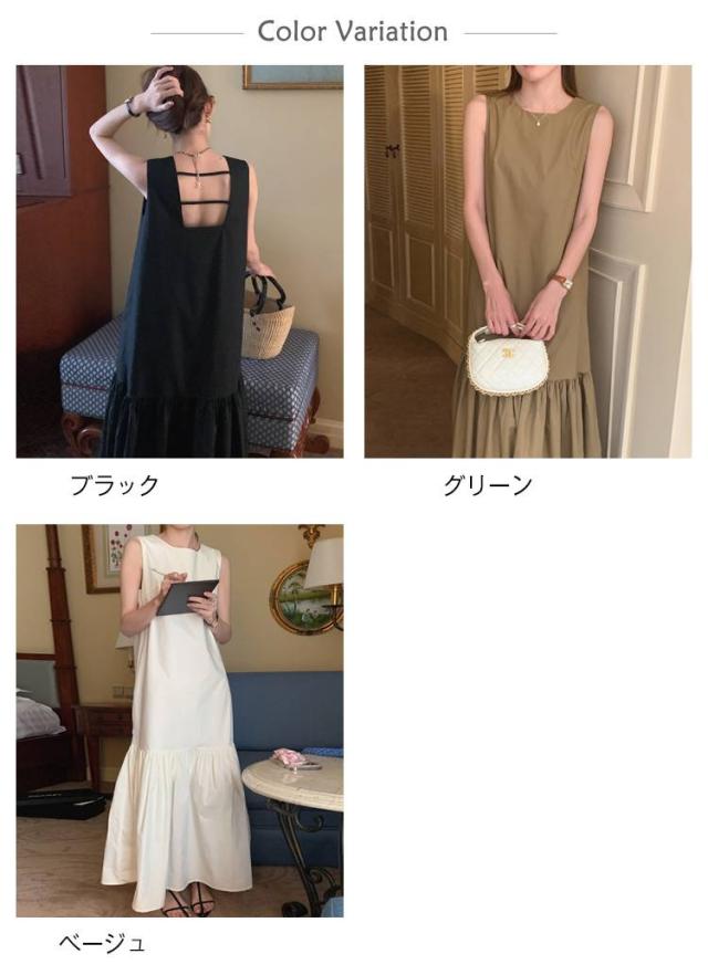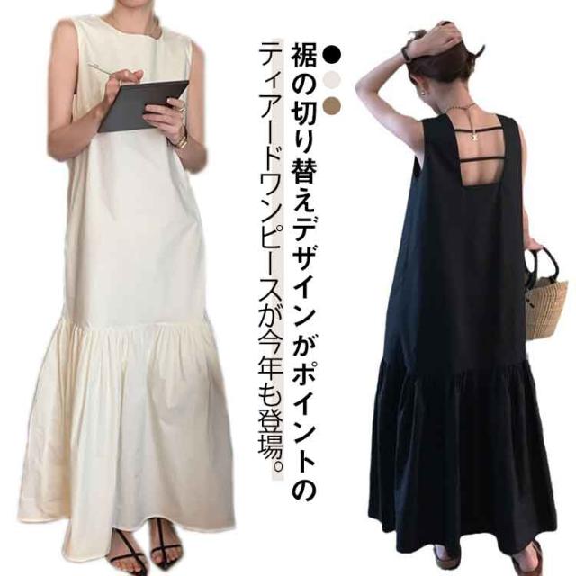 可愛い マーメイドワンピース 春 ノースリーブ 夏 ワンピース マキシワンピース ティアード 切り替え レディース ノースリーブ サマーワンピース ロング丈 バック露出 ゆったり ティアードワンピース