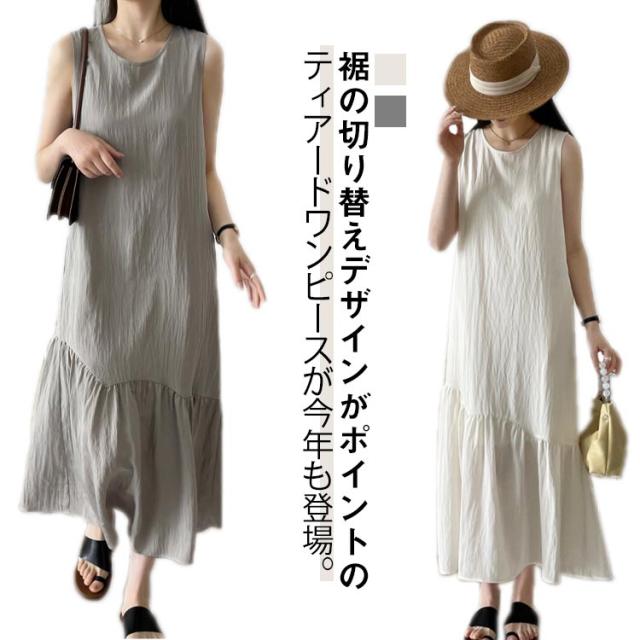 マーメイドワンピース 春 夏 ティアードワンピース ワンピース 切り替え マーメイドワンピース マキシワンピース ノースリーブ ティアード ノースリーブワンピース サマーワンピース ロング丈 ナチュラル ゆったり レディース