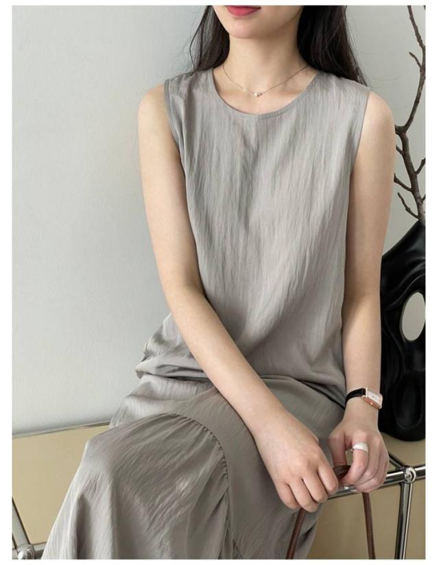 | 裾の切り替えデザインがポイントのティアードワンピースが今年も登場。 程よくゆとりがあるので、身体のラインを拾いにくく、すっきりとしたシルエットに。 リラクシーな着心地ながら、きれいめな着こなしを叶えます。 ノースリーブだからちょっと寒い時はジャケットやカーディガンなどのアウターを羽織ることもできます。 お出かけにはもちろんルームウエアとしてもおすすめ。 | |