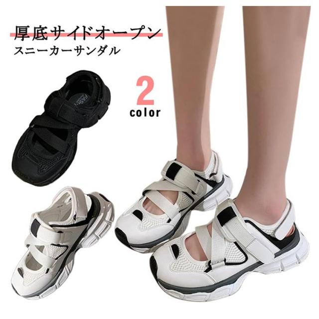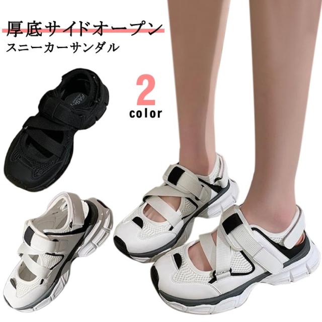 スニーカー バイカラー レディース 靴 厚底 ソックス スニーカーサンダル サンダル シューズ 歩きやすい 靴下合わせ 厚底サイドオープンスニーカーサンダル 可愛い 夏 春夏 通気性