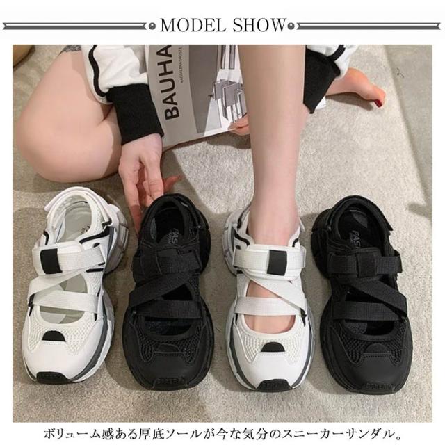 | 厚底サイドオープンスニーカーサンダル ボリューム感ある厚底ソールが今な気分のスニーカーサンダル。 サイドオープンの太めのベルトがアクセントな抜け感のあるデザイン。 軽量なので歩きやすくデイリーに活躍間違いなし! | |