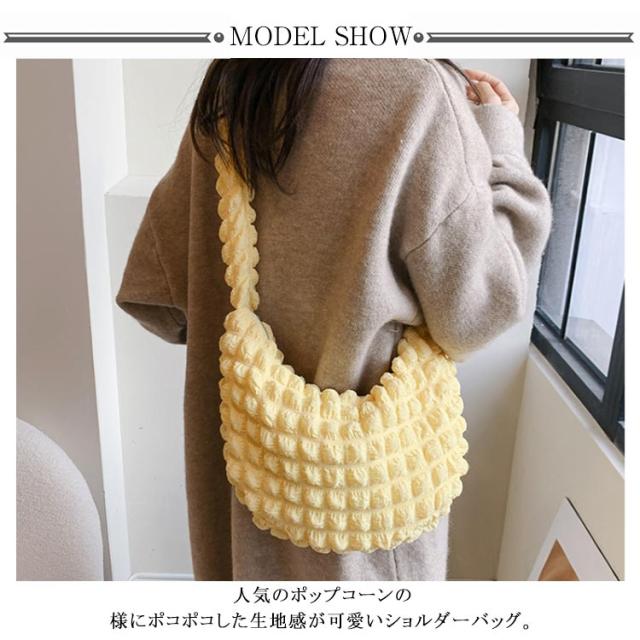 レディース ショルダーバッグ ポップコーンショルダーバッグ 肩掛け 人気BAG ぽこぽこ ショルダー ポップコーン 肩掛け 斜め掛け バッグ ポップコーンショルダーバッグ 可愛い ブラック ホワイト 黒 白 通勤通学