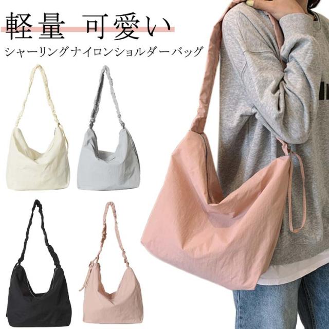 シャーリングナイロンショルダーバッグ ナイロンバッグ シャーリングナイロンショルダーバッグ 可愛い 肩掛けバッグ 斜め掛けバッグ レディース ショルダーバッグ カジュアル 軽量 かわいい A4サイズ 上品 大人 緑 ブラック ホワイト ブルー 白