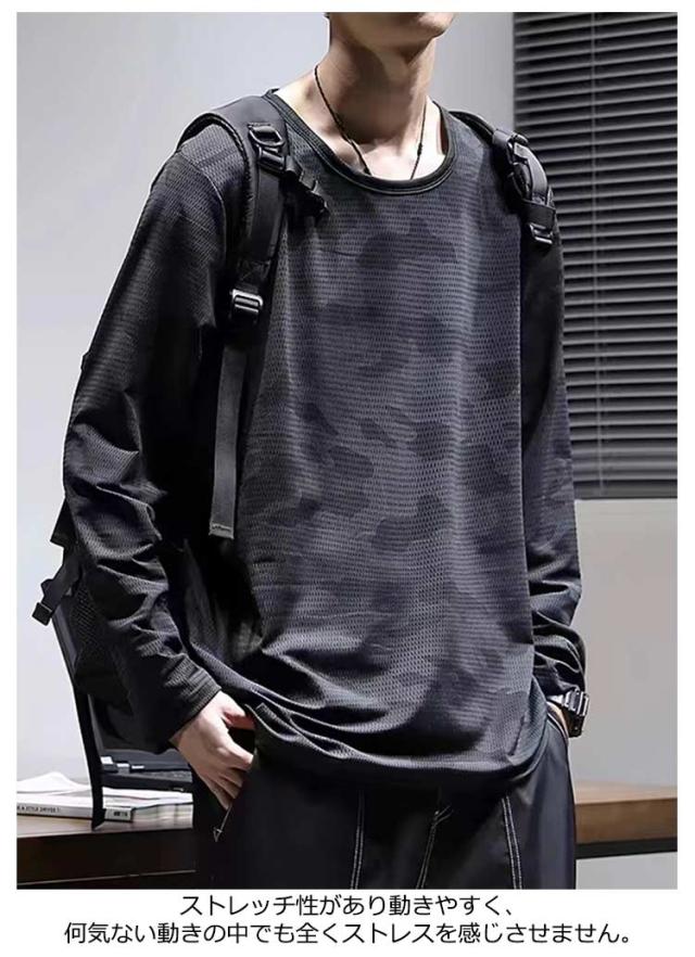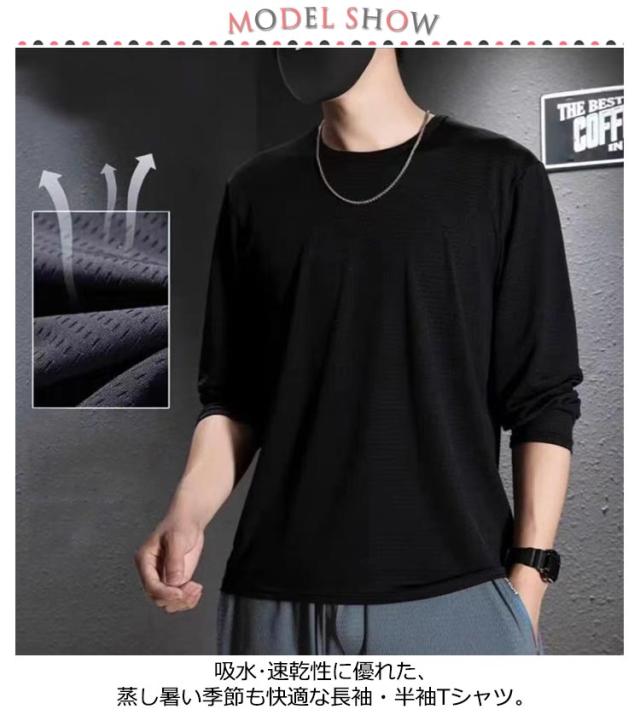 ドライ 大きいサイズ ストレッチ素材 ラッシュガード UVカット 接触冷感 吸水 冷感Tシャツ 半袖 トップス 接触冷感 長袖 薄手 運動着 体型カバー ロンT メンズ 夏用 速乾 ひんやり 涼しい クルーネック 無地 カジュアル 黒