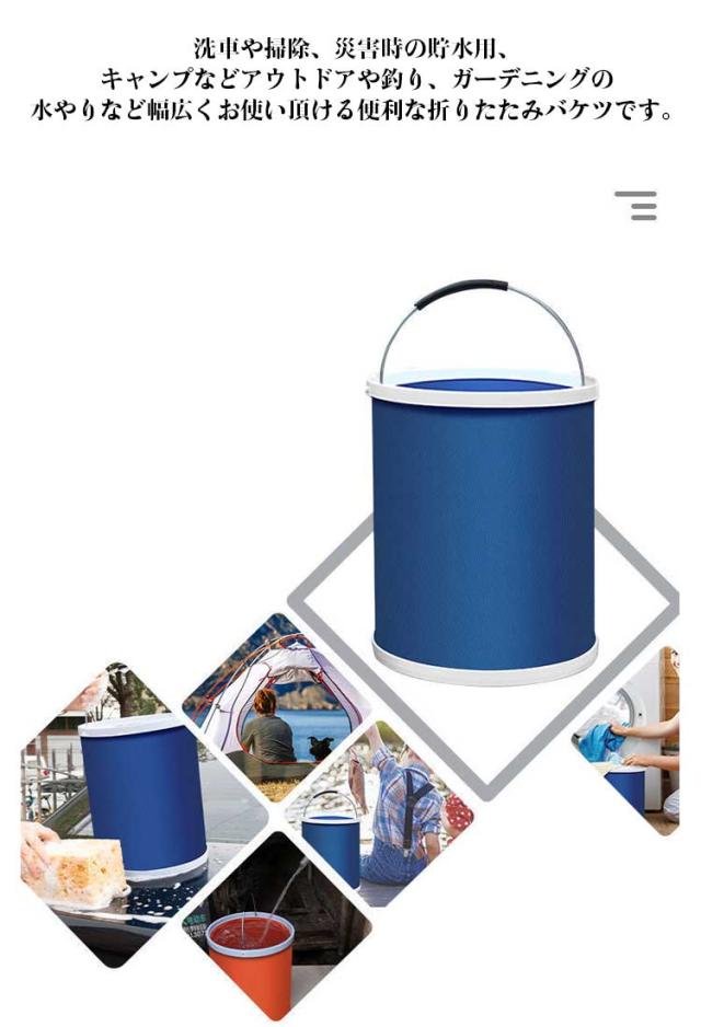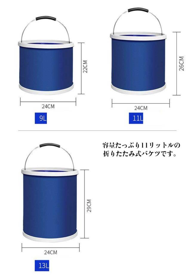 | 折りたたみ式 洗車、掃除、キャンプ、釣り等多用途のバケツです。容量たっぷり11リットルの折りたたみ式バケツです。 洗車や掃除、災害時の貯水用、キャンプなどアウトドアや釣り、ガーデニングの水やりなど幅広くお使い頂ける便利な折りたたみバケツです。 バケツの取っ手を持って回しながら上に引っ張ると広がります。広げた時の高さは約27.5cmで、水の量が満杯でも少量でも、無くても自立します。 ソフトなPVC素材です。バケツの底は丈夫なプラスチックです。 折り畳みは簡単、軽くて、旅行先に、スペースを節約し、バッグや車を保管したり運んだり、水を節約したり、砂や雑草を集めるのに便利です。このバケツは車のトランクの片隅、あるいは登山袋に入れることができます。 キャンプ、ピクニック、ハイキングなどに理想的コンパクトに折りたためて持ち運びも便利です。使わないときはコンパクトに折りたためます。また、車に積んでおくと、アウトドアやとしても重宝します。製品は軽いですから、旅行、徒歩などに適用します。 | |