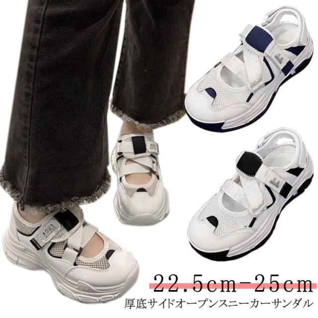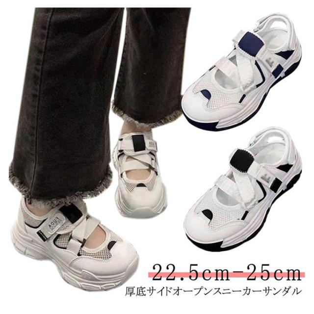 ソックス レディース シューズ 靴 厚底 サンダル スニーカー スニーカーサンダル 厚底サイドオープンスニーカーサンダル 歩きやすい 厚底サイドオープンスニーカーサンダル 靴下合わせ 可愛い 夏 春夏 通気性