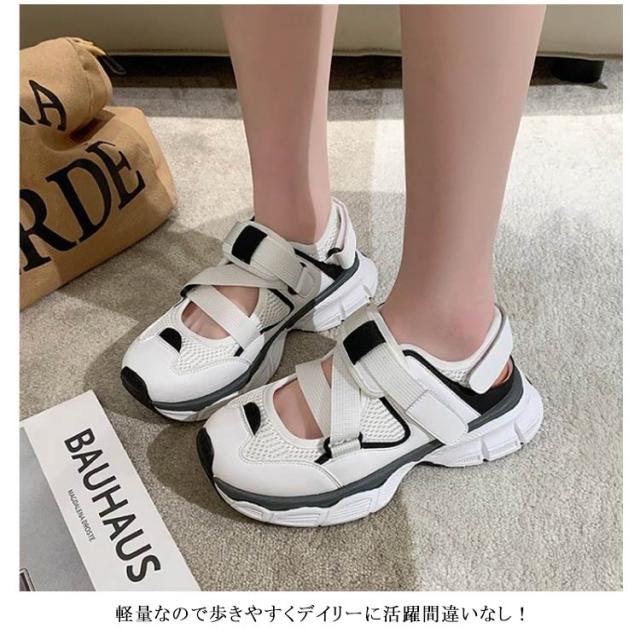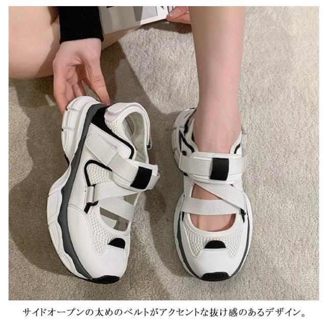 レディース スニーカー 歩きやすい 厚底サイドオープンスニーカーサンダル サンダル シューズ 厚底 スニーカーサンダル バイカラー 靴下合わせ 厚底サイドオープンスニーカーサンダル ソックス 可愛い 夏 春夏 通気性