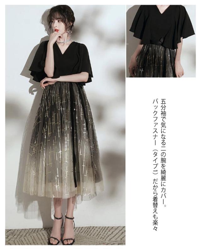 | ステージ映えする存在感? 着るだけで舞台の主役になれるロングドレス S-3XL 【膝丈/マキシ丈】選べる着丈 2タイプ 適度程よい厚みのるる生地感は身体のラインを綺麗に見せてくれる。 星や月のスパンコールがラインを反射してキラッと光るので舞台映え。 皺になりにくいので演奏旅行にも最適です! <details> 1.上半身を華奢に見せてくれる効果があります。大人っぽくかっこいい女性らしさを演出できます。 2.ハイウエストで体型カバー高めの位置でまとめたウエストは体型カバーやスタイルアップ効果も期待出来ます。エレガントで女性らしい雰囲気を演出できます。 3.五分袖で気になる二の腕を綺麗にカバー。バックファスナー(タイプ1)だから着替えも楽々♪ 4.程よい透け感のあるシアー素材に。花柄刺繍(タイプ2)が目立ち華やかな印象に。 5.編み上げひも(タイプ2)は、独特のデザイン性があり、ドレスに個性的な印象を与えます。特に、バックスタイルに編み上げひもを取り入れたドレスは、セクシーでエレガントな印象を与えます。 6.コードレースの透け感が艷やかな女子の魅力を上品に醸し出します。結婚式やお呼ばれ、演奏会や発表会など、華やかなシーンにピッタなロングワンピースドレスとなっております。 | |