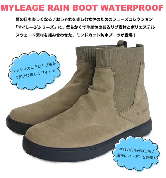 Columbia コロンビア レディース マイレージレインブーツ ウォータープルーフ 防水 レインシューズ ショートブーツ 通気性 ミドル丈 サイドゴア スエード調 靴 長靴 雨靴 通勤 通学 アウトドア 雨天 台風 災害 おしゃれ 可愛い カジュアル YL1421 SALE