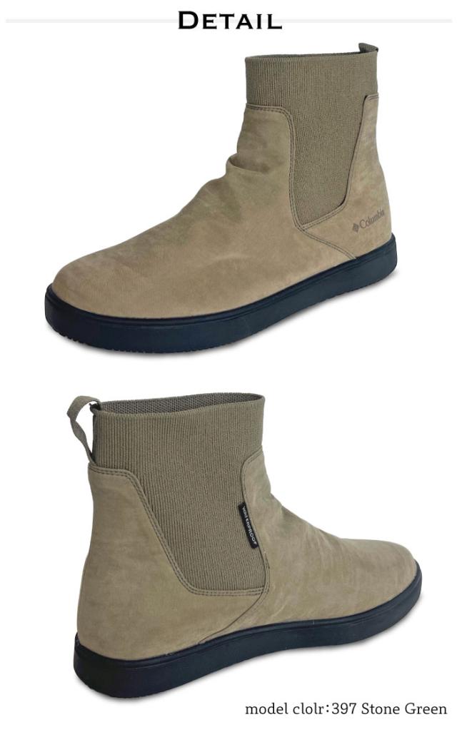 ポリエステルスエード部分はウォータープルーフ仕様で、雨あがりや急な天候変化でも安心して履けるのが嬉しいポイント。 履き口部分のソックスのようなリブ編みで足元に優しくフィットします。