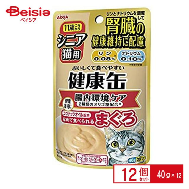 アイシア シニア猫用 健康缶パウチ 腸内環境ケア40g×12個 まぐろ味 ウェットタイプ ウェットフード 健康 パウチタイプ 11歳以上 高齢猫 腎臓 リン ナトリウム 中鎖脂肪酸 ココナッツオイル なめて食べられる とろとろ ペースト