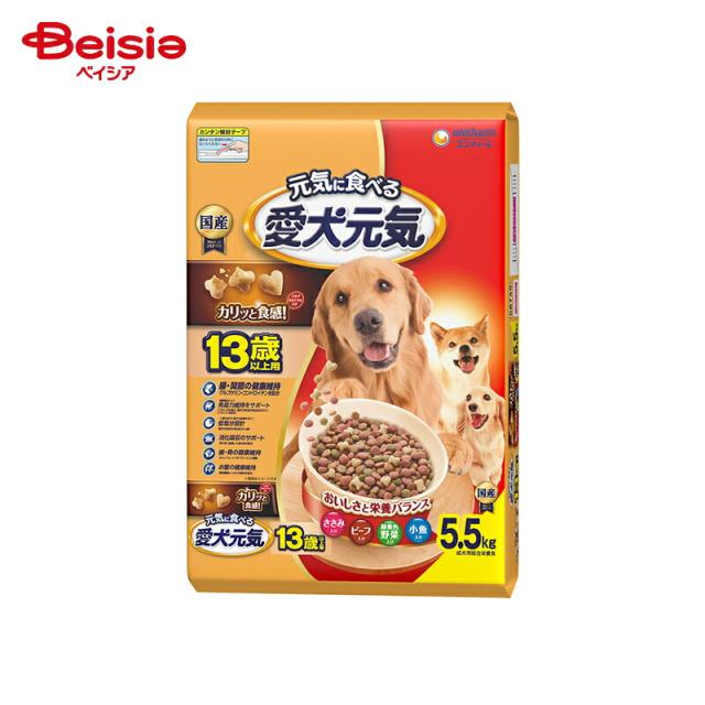 ドッグフード ユニ・チャーム 愛犬元気 13歳以上用 ささみ・ビーフ・緑黄色野菜・小魚入り 5.5kg ドライフード 大袋 ペット | ドッグフード 13歳以上 シニア犬用 ささみ ビーフ 小魚 健康維持 栄養バランス ドライフード 大容量 まとめ買い