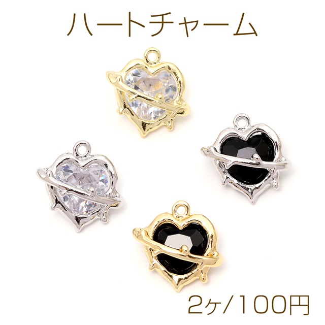 ハートチャーム フレームガラスチャーム ガラスストーンチャーム ハートモチーフ 1カン付き 約16×17mm(2ヶ)