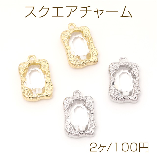 スクエアチャーム フレームガラスチャーム ガラスストーンチャーム スクエアモチーフ 1カン付き 約13×20mm(2ヶ)